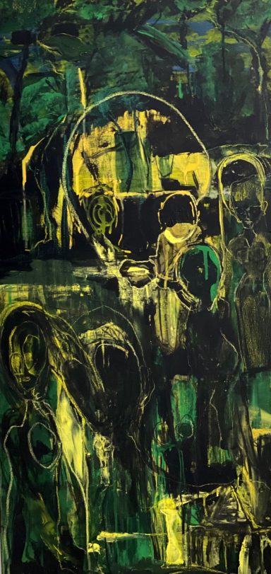 In the depths of the shadows, light takes human form — quiet and solitary, enveloped by the jungle’s unspoken truths.